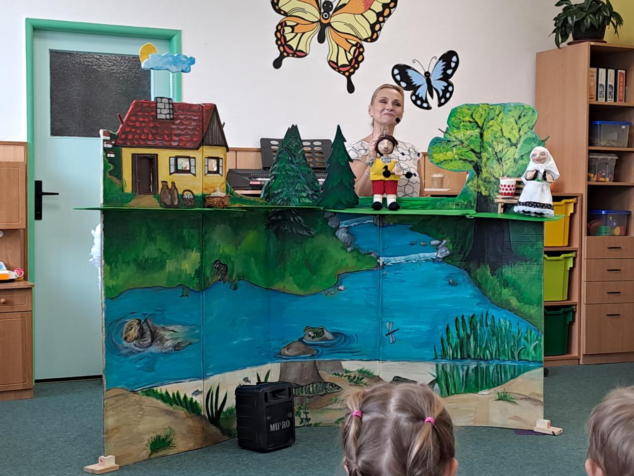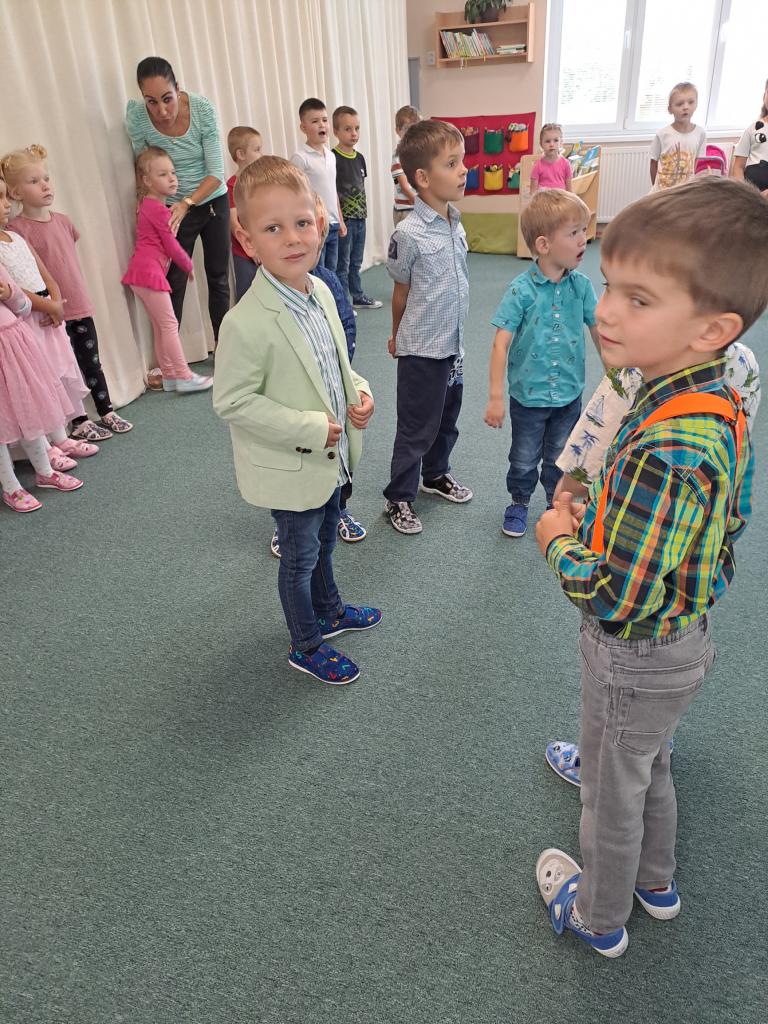 První kulturní zážitek ve školce a vskutku pohádkový. Holčičky z Beruškové třídy vypadaly v šatečkách jak princezny. Nastrojené byly i děti ve Sluníčkách a Motýlkách. Před pohádkou jsme si udělaly módní přehlídku a pojmenovaly tak nový prvek z pánského šatníku- sako.