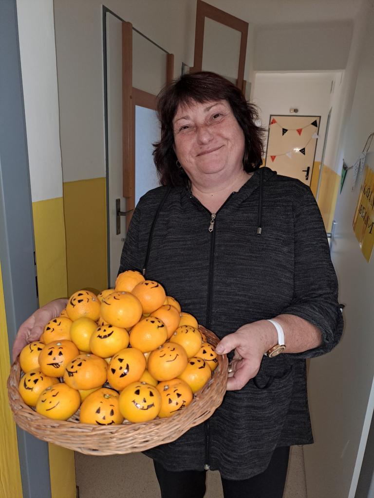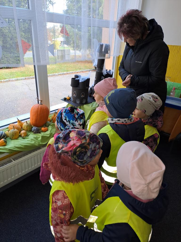 Poslední říjnový den pořádala škola akci spojenou s keltským svátkem Halloween. Ve škole pořádali výstavu vydlabaných dýní, stezku odvahy a přespání. Protože jsme velmi zvědaví, navštívili jsme kamarády a prohlédli si ve škole dokonalou výzdobu. V denním světle se naše děti nic nebály a o vše kolem se zajímaly. Dýničky si chtěly také vyrobit. Ve školce jsme si povídali o Dušičkách a vhodnou formou dětem vysvětlili jejich význam.