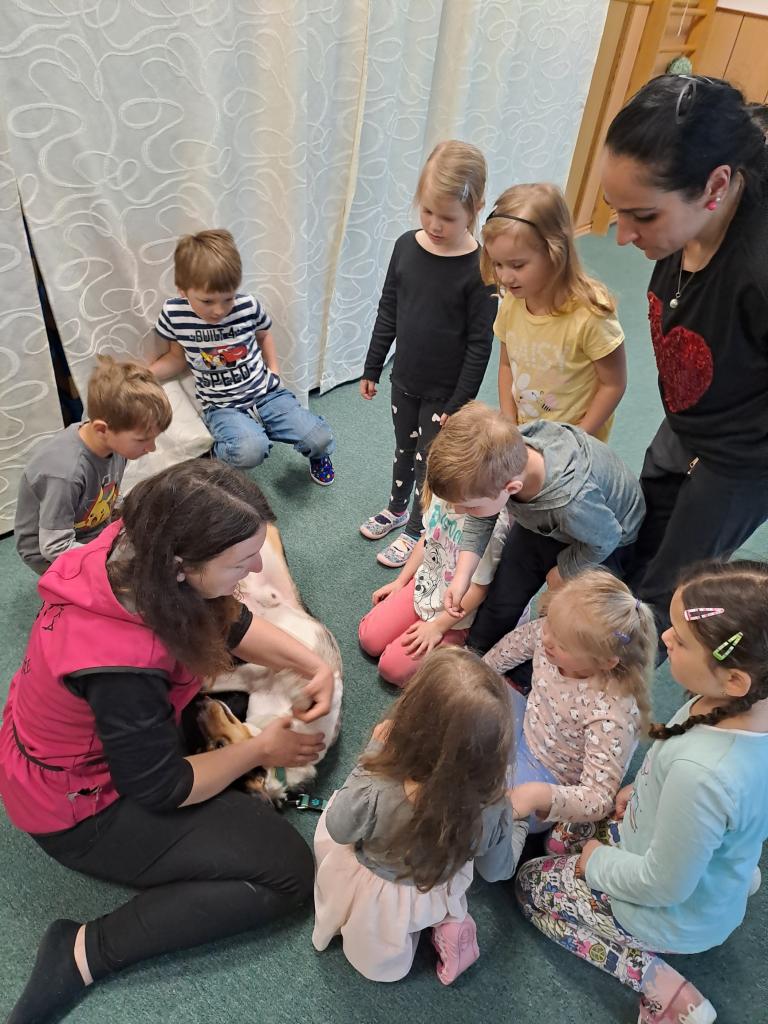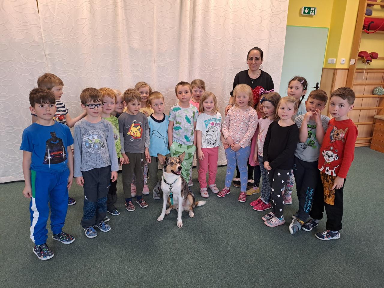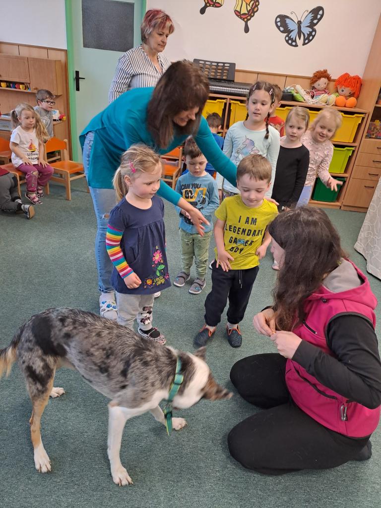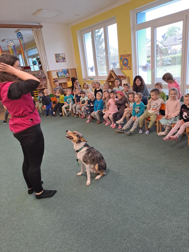 Společně jsme se dozvěděli, jak se k pejskům máme a nemáme chovat. Říkali jsme si, že v blízkosti psů nekřičíme, nemůžeme hladit každého psa, kterého potkáme, a hlavně nestrkáme při vycházce ruce skrz plot. Paní kynoložka děti naučila, jak se chránit při napadení psem. Už víme, kde se Baks nechává hladit nejraději a jaké dobroty má rád. Vše jsme si mohli v praxi vyzkoušet. Podat dobrůtku  zacvičit si .                                                   Všichni jsme byli psí návštěvou nadšení, na což se můžete zde podívat.