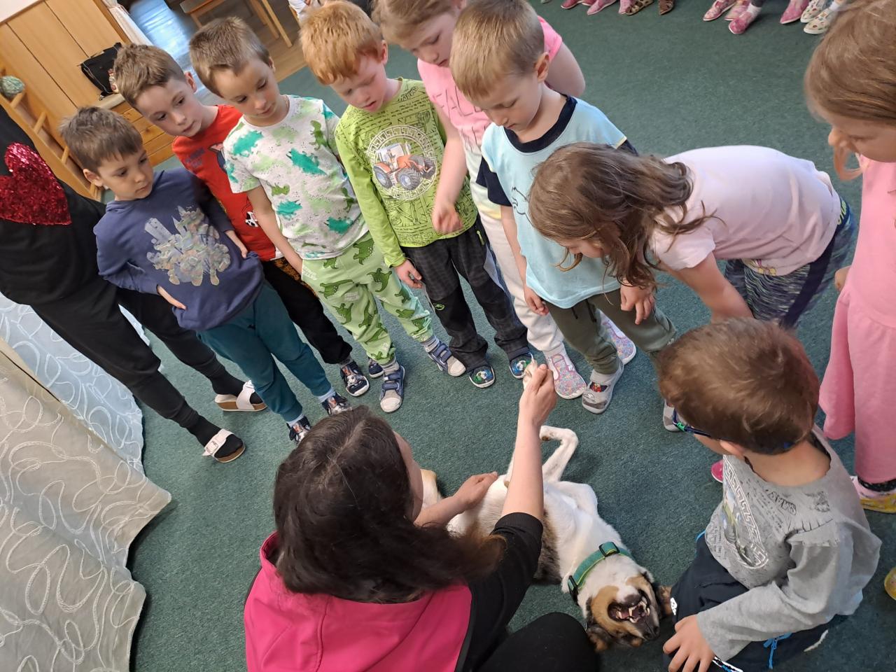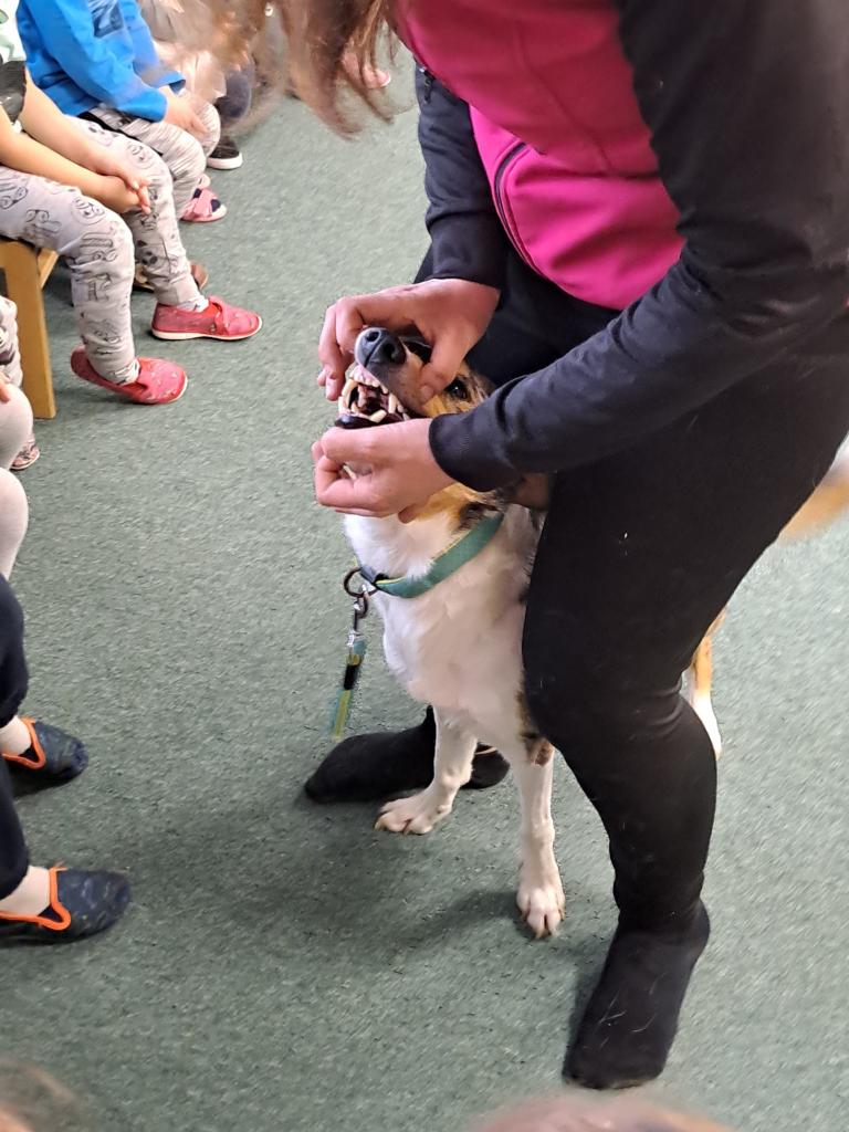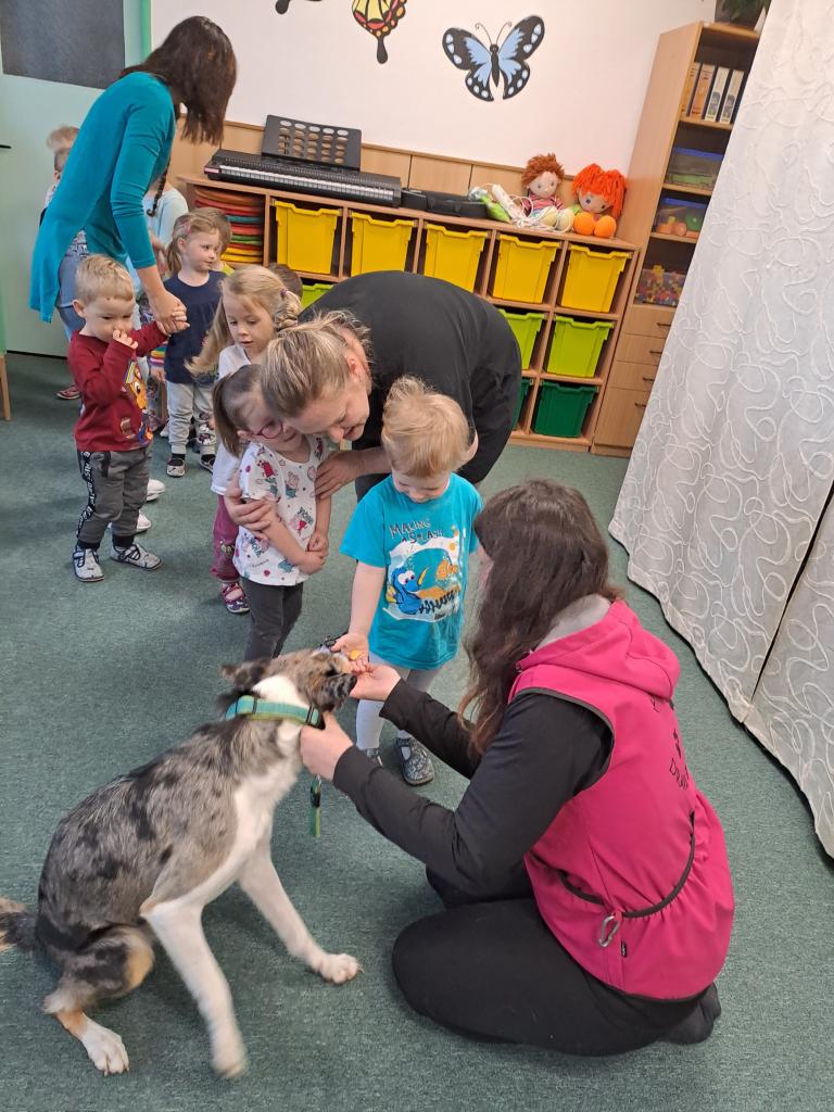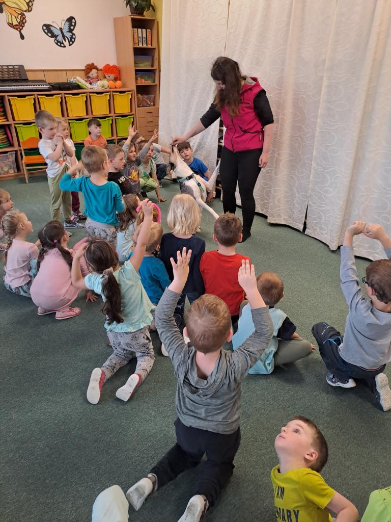 Společně jsme se dozvěděli, jak se k pejskům máme a nemáme chovat. Říkali jsme si, že v blízkosti psů nekřičíme, nemůžeme hladit každého psa, kterého potkáme, a hlavně nestrkáme při vycházce ruce skrz plot. Paní kynoložka děti naučila, jak se chránit při napadení psem. Už víme, kde se Baks nechává hladit nejraději a jaké dobroty má rád. Vše jsme si mohli v praxi vyzkoušet. Podat dobrůtku  zacvičit si .                                                   Všichni jsme byli psí návštěvou nadšení, na což se můžete zde podívat.