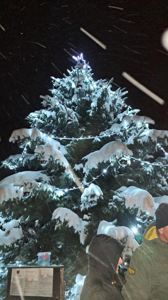 Paní učitelky a starší děti, Motýlci, moc pěkně vystupovaly se svým pásmem vánočních písní při příležitosti rozsvěcení stromu v Miřeticích. Odměnou byl potlesk, radost hrdých rodičů, prarodičů i ohňostroj.