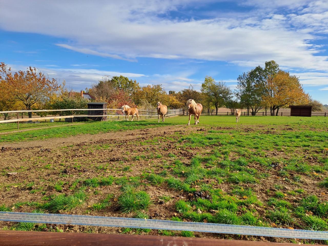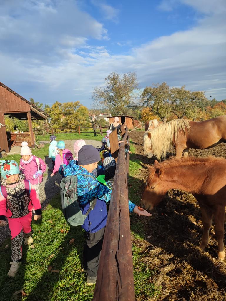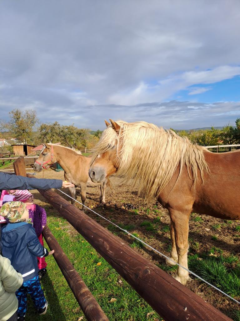 Velkou radostí bylo pěkné počasí. Duha se ukázala v dálce a my si mohli užít celé dopoledne venku. Děti poznávaly krásně naaranžované plody podzimu. Moc si pochutnaly na dobrůtkách od maminky