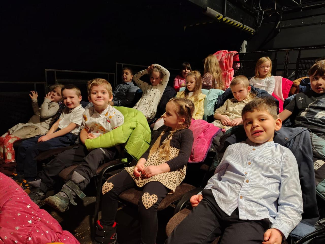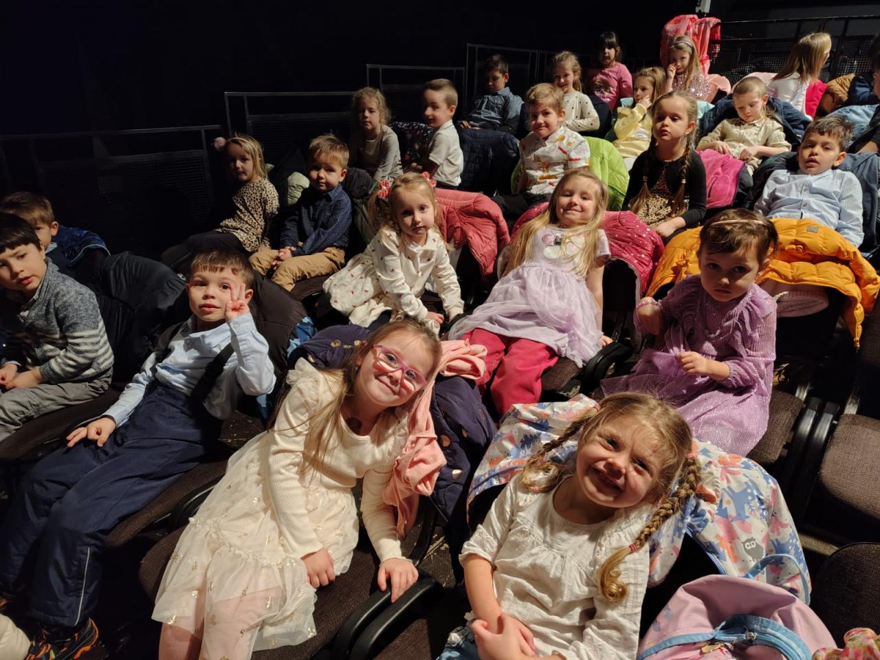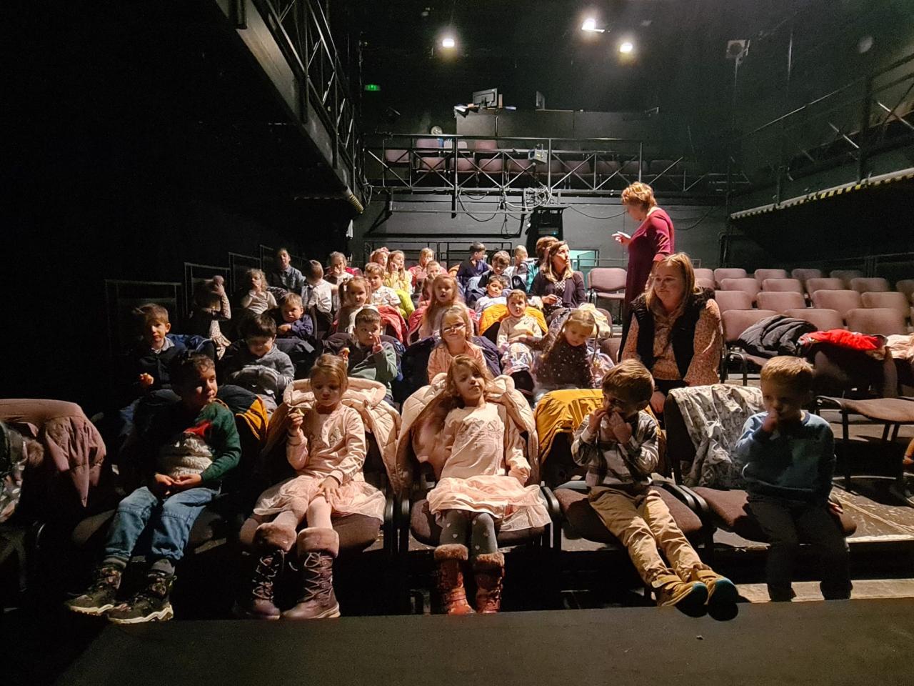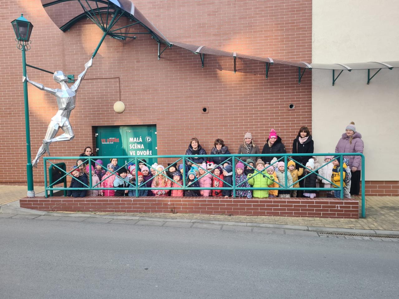 Očekávání bylo veliké, děti hodné a vzorné, přestože máme i malošky. Předem byly instruovány jak se chovat v autobuse i divadle.                                                                                     V pěkném přiměřeně velkém prostředí jsme se cítilI dobře .  Děti sledovaly Jeníčka a Mařenku. Ježibabu s lopatou a obávaly se jak to dopadne. Pochopitelně se jí to nepovedlo. Viděli jsme toho ještě mnohem více. A přitom to pořád byla ta stará dobrá Perníková chaloupka. Věříme, že setkání s divadlem bude dlouhotrvající zážitek pro všechny děti. Cestou k autobusu jsme si prohlédli velké Východočeské divadlo, před ním se pobavili u křivých a vypouklých zrcadel.