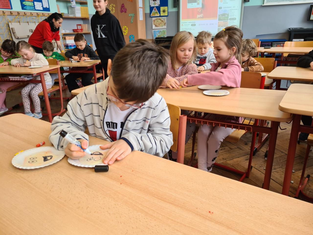 Třetí školička se nesla v duchu masopustu a masopustních koblížků. Tentokrát  na nás čekali ve čtvrté a páté třídě. Naše děti se dozvěděly něco o  tradici Masopustu, povídaly si pohádku O Koblížkovi.