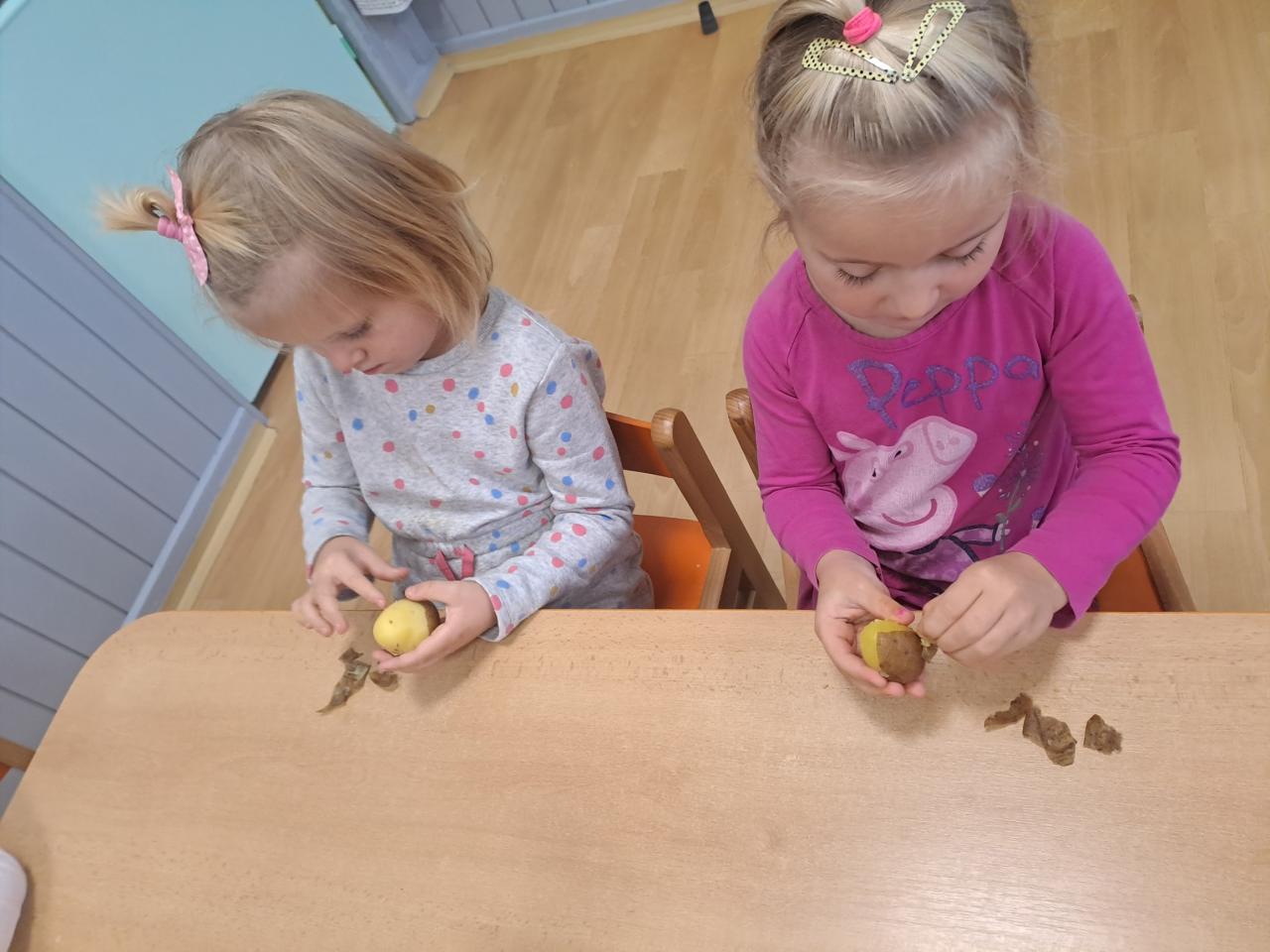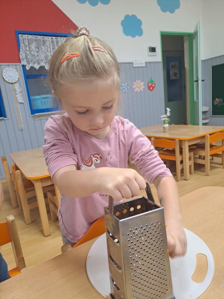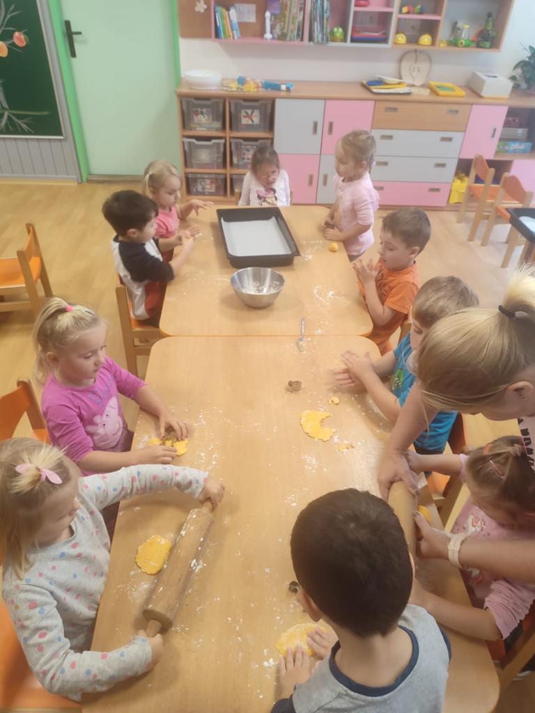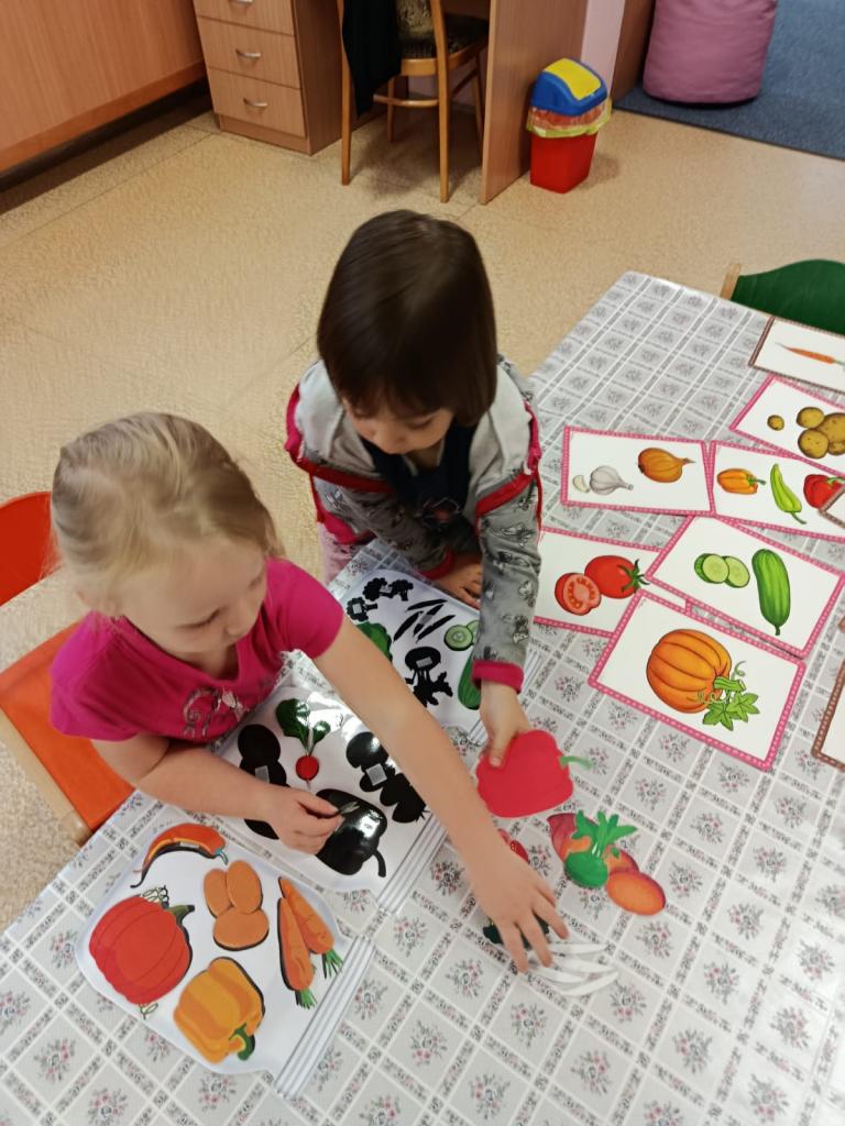 Ve všech odděleních školky se připravovaly dobroty, ochutnávky a také osvěta o zdravém stravování. Děti s paní učitelkou v Beruškách se nejprve připravovaly teoreticky. Poznávaly zeleninu a ovoce, plnily zadání her. Nakonec vařily, loupaly brambory a připravily si bramborové placičky. Motýlci očistily, nakrájely zeleninu a vařily polévku. Pochutnaly si na ní a ohlásily, že byla nejlepší a mňam. Sluníčkové děti měly brambory na loupačku. I přes rizikové strouhání připravily těsto a pekly mrkvové cukroví a naaranžovaly si ovocný raut.