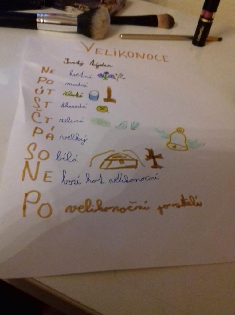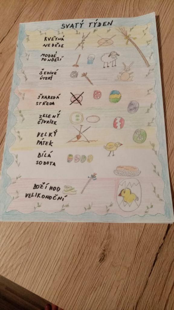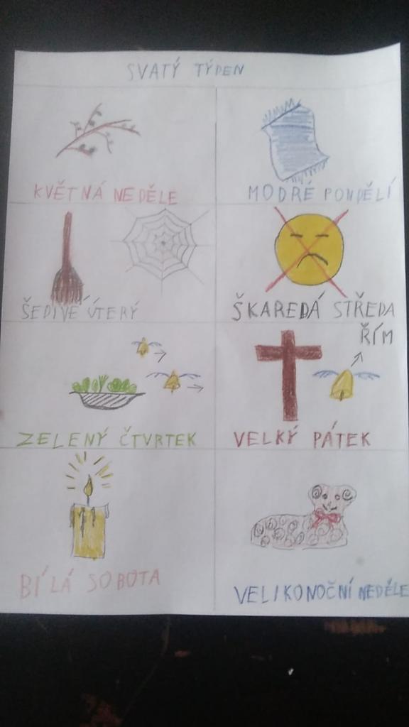 Distanční výuka byla minulý týden ovlivněna blížícími se Velikonocemi. Nejprve jsme si popovídali o Svatém týdnu...