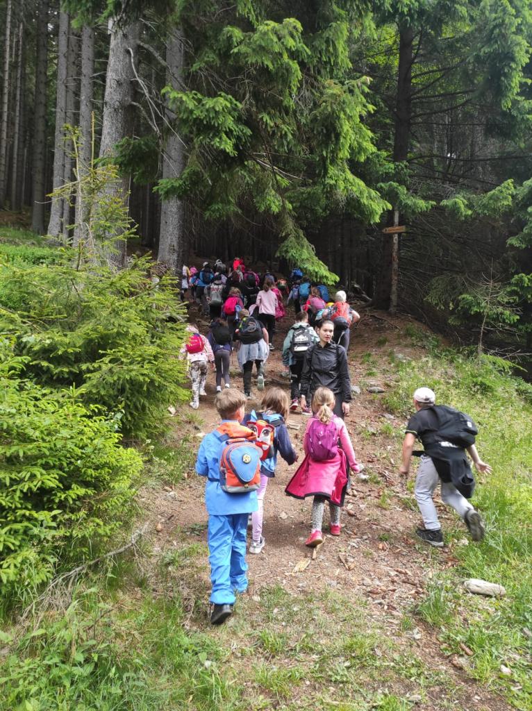 Vyjeli jsme lanovkou na Sněžku, navštívili Poštovnu, zakoupili drobné upomínkové předměty, podívali se do kraje do Čech i do Polska. Cesta zpět rychle utekla, protože někteří neměli ani čas zvednout oči, když zodpovědně počítali, kolik schodů je cestou dolů. My už to víme a co Vy? Asi Vám nezbyde nic jiného, než to jet přepočítat😊