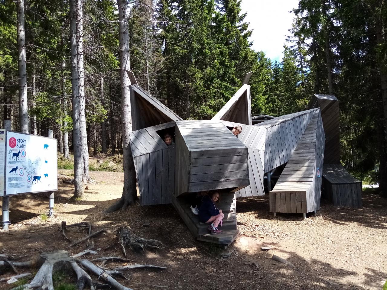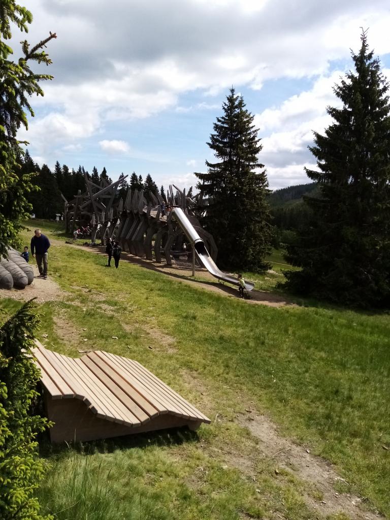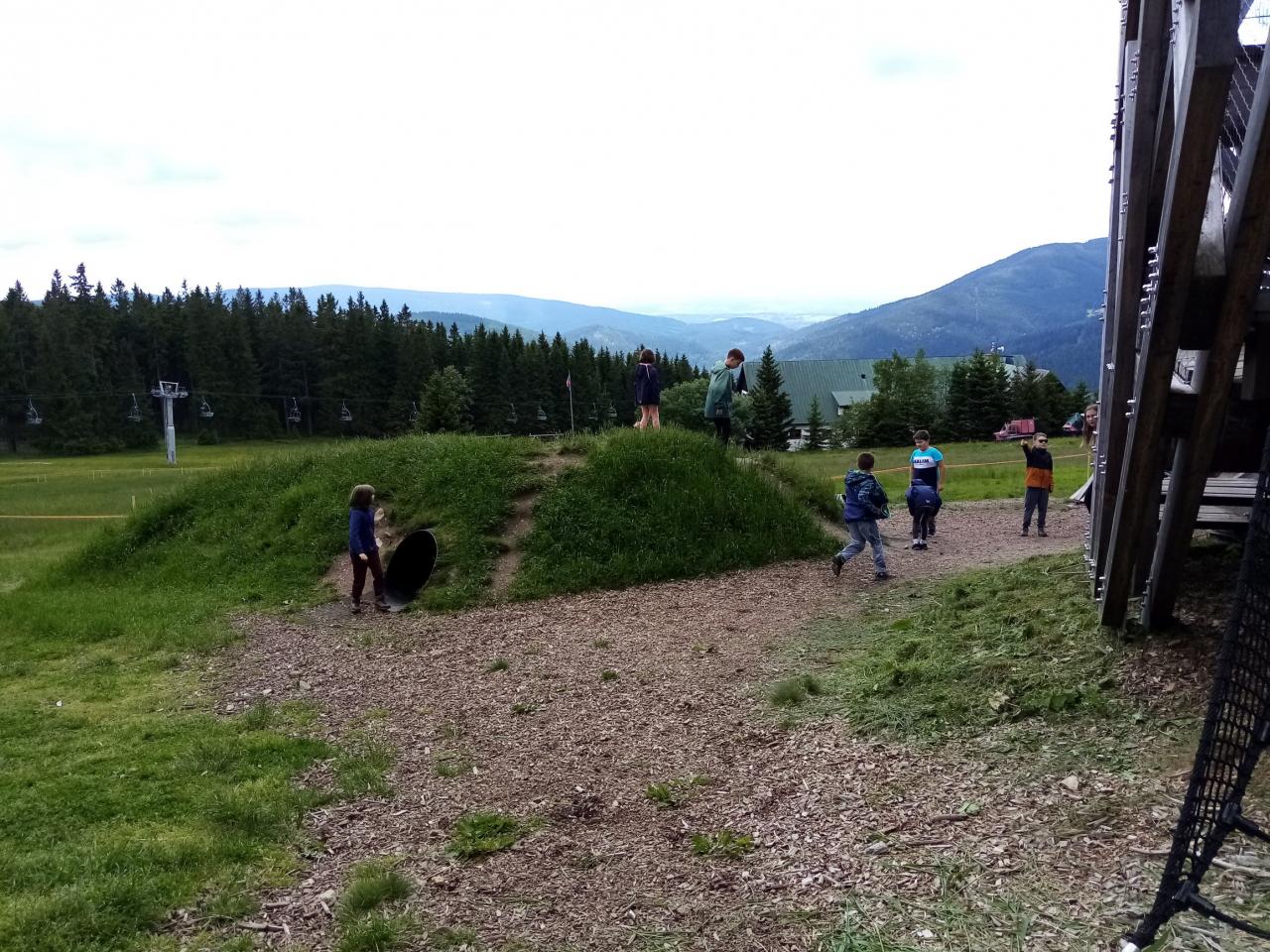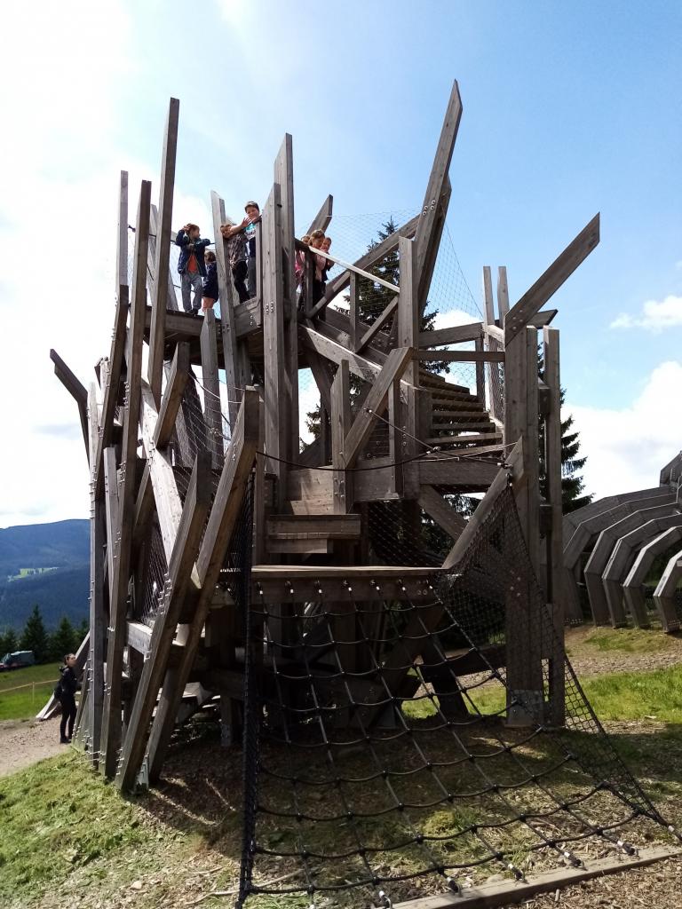 Užili jsme si dřevěných atrakcí a vydali se na další etapu – lanová stanice Růžová hora. Obědvali jsme po cestě na Růžohorkách.