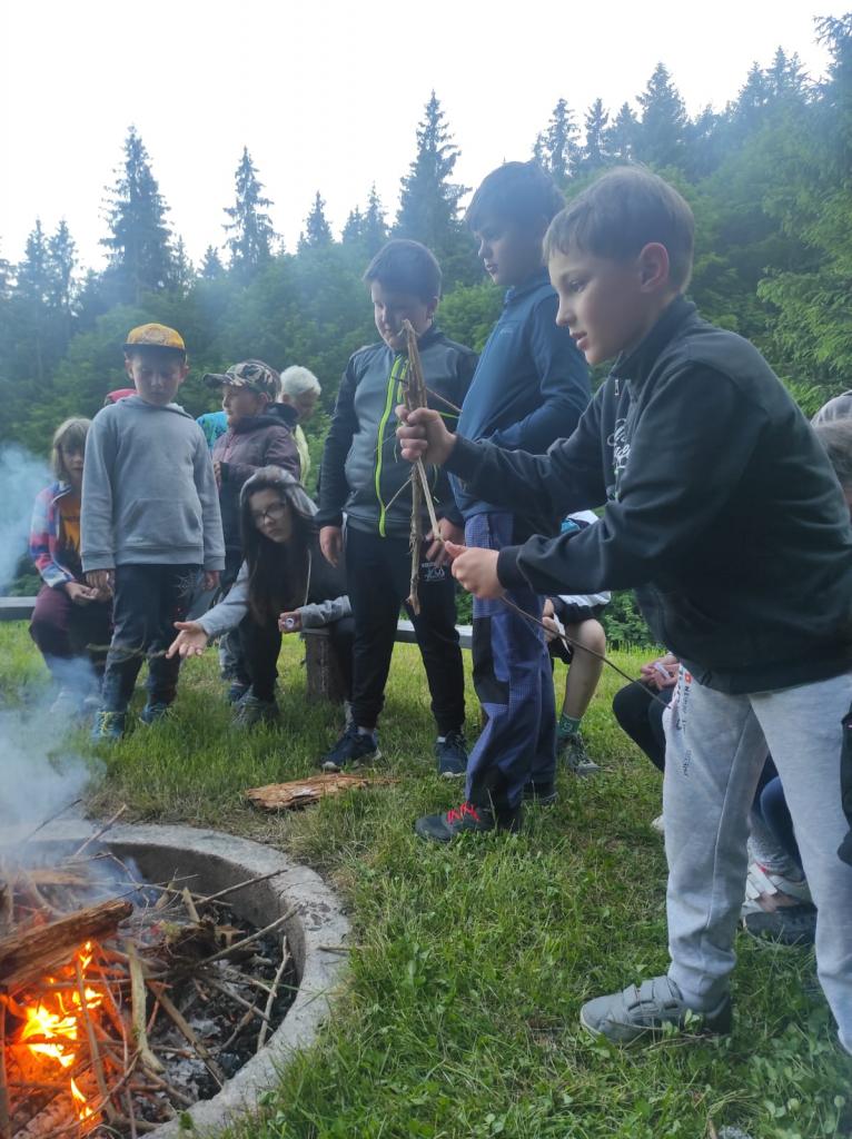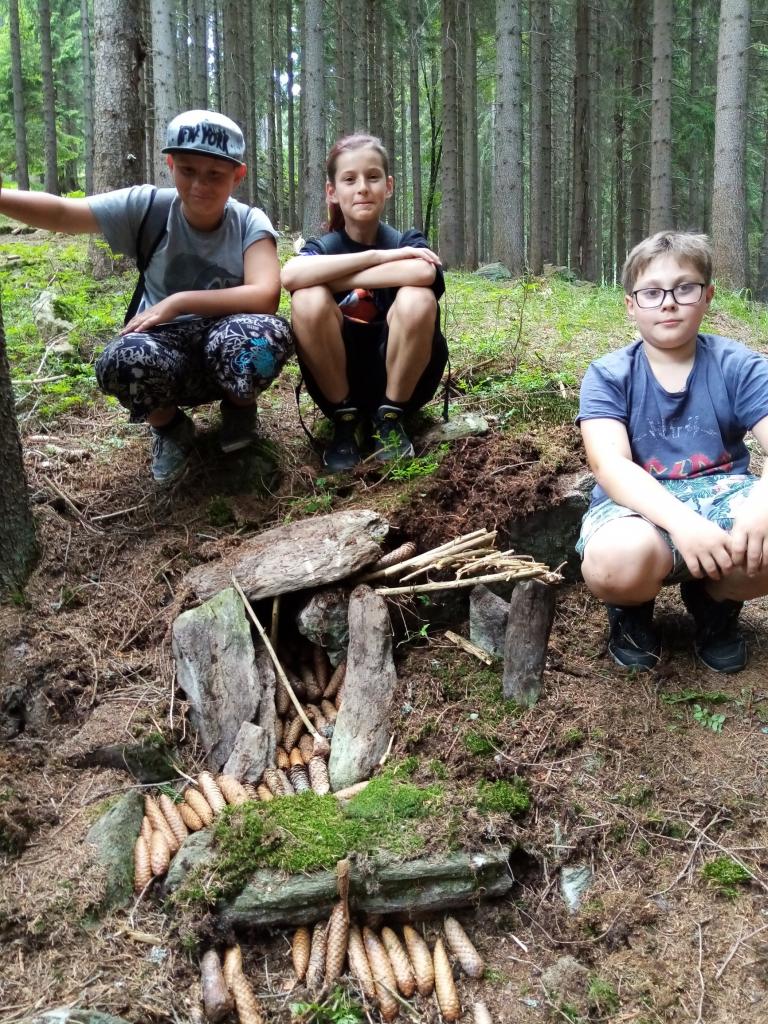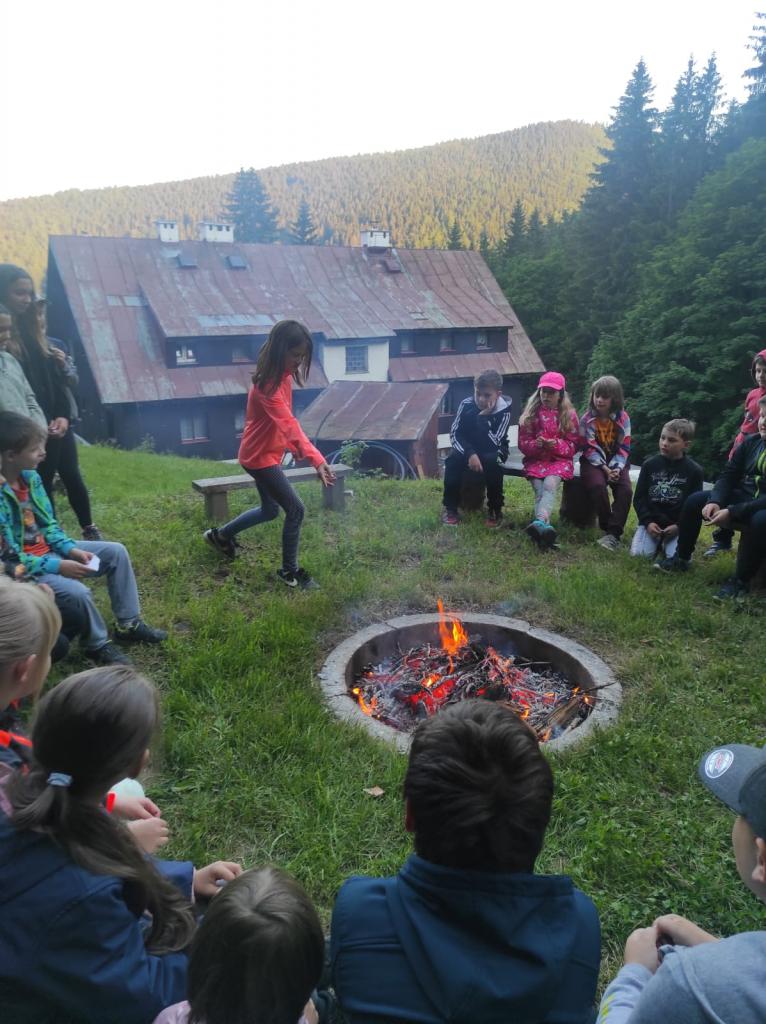 Večerní program jsme pojali jako výzvu Čaroděje Černovouse. Děti měly pojmenovat svůj STRACH a napsat ho na papírek. Zapálili jsme rituální oheň, pronesli zaříkadlo a STRACH spálili. Uvidíme zítra, jestli to zabralo a jestli se někdo stále bude na lanovce bát ( a budeme doufat, že bouřka nebude).