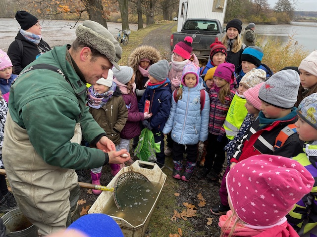 Po první vyučovací hodině jsme se společně vydali přes Miřetice, kolem řeky Ležák na Dubovou. Dále jsme pokračovali do Havlovic k rybníku Hořička. Výlov byl v plném proudu a žáci tak měli možnost vidět, jak samotný výlov probíhá. Pan porybný nám ukázal, jak vypadá amur, štika, okoun, lín, plotice a malý kapřík, který byl v rybníku vysazen v květnu. Po příjemně strávené hodince jsme se vrátili zpět ke škole. Počasí nám přálo a v nohách jsme měli přes 6 km.