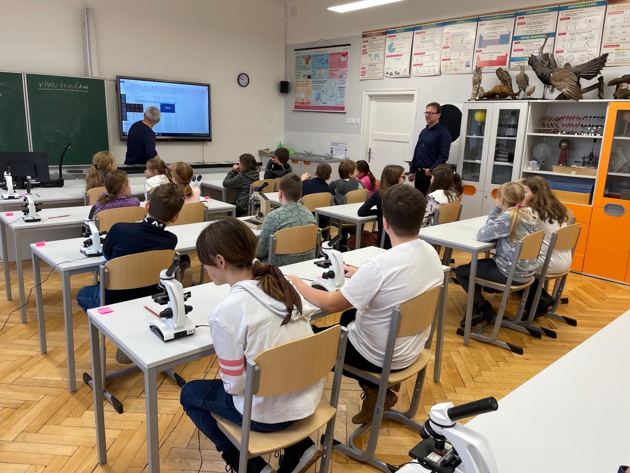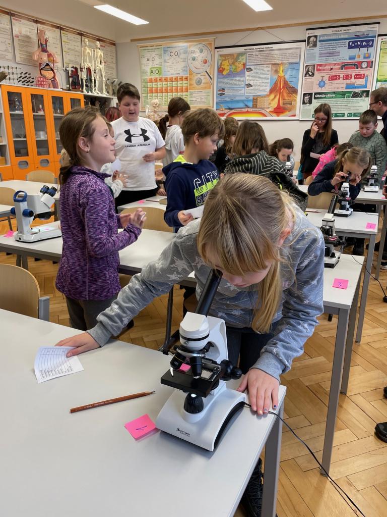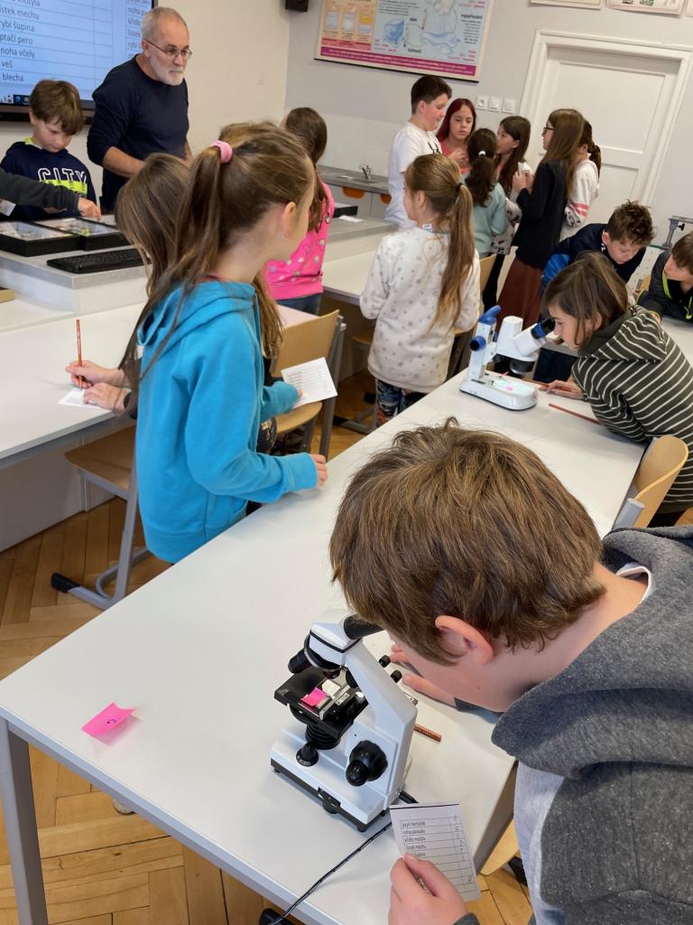 Dramatický kroužek si pro nás připravil pohádku Dva tovaryši, která se nám moc líbila. Po divadelním představení odešly menší děti do hudební učebny, kde společně s paní učitelkou zpívaly koledy a hrály na boowhackers. Skupinka starších se odebrala s panem ředitelem do přírodovědné učebny, kde je čekalo pozorování mikroskopem. Vzorky, které si mohli žáci v mikroskopech prohlédnout, byly velmi zajímavé - nechyběl jazyk hlemýždě, noha pavouka, křídlo motýla, rybí šupina, ptačí pero, noha včely, blecha a veš. Dále viděli sbírku motýlů a brouků a byly jim ukázány vycpaniny např. tetřev hlušec, kachna lyska, sojka, straka a sousta dalších.