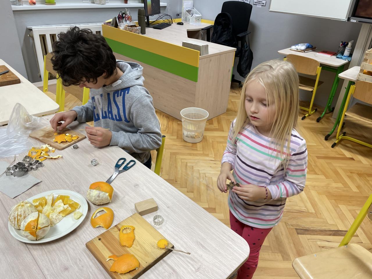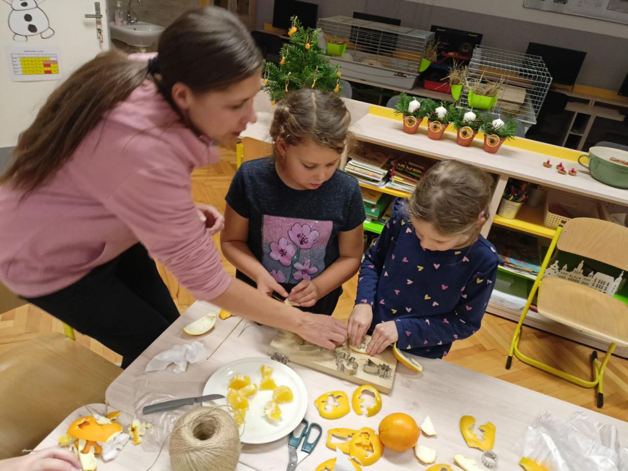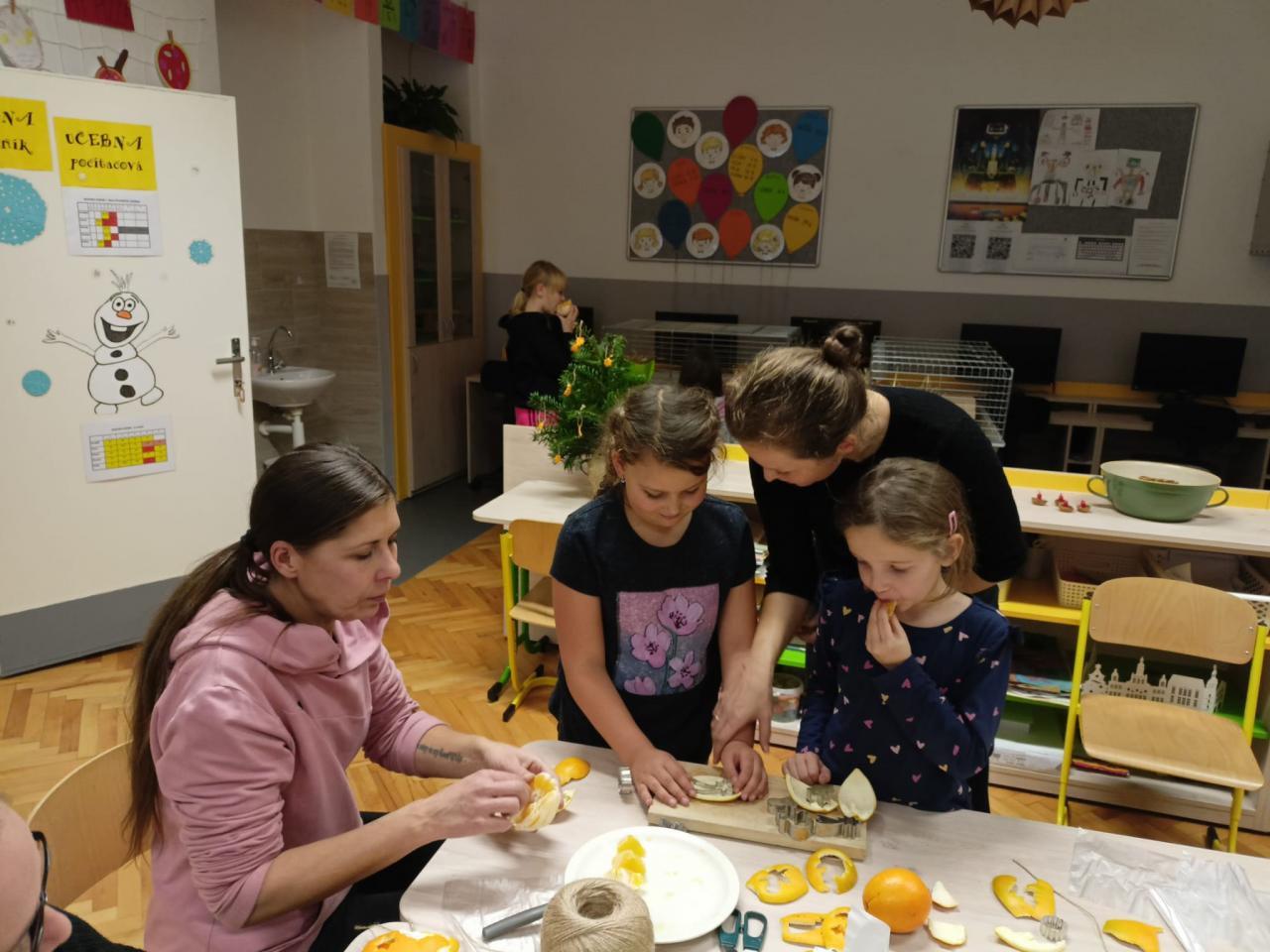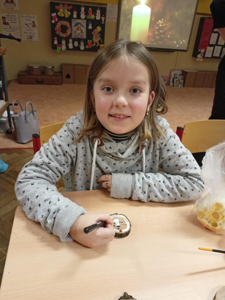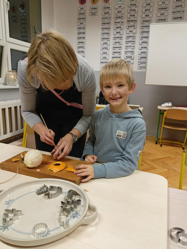 Letošní dílničky se nesly ve staročeském duchu. Ten, kdo zavítal do naší školy mohl nasát kouzlo Vánoc a vánoční atmosféru. Ze tříd zněly vánoční koledy, škola voněla pomerančem, skořicí, hřebíčkem a jehličím. Každý si mohl vyrobit a odnést spoustu krásných vánočních výtvorů - věnec z jehličí a přírodnin, ozdoby vykrajované ze slupky pomerančů, hvězdu z větviček, keramickou ozdobičku, vlastní malbu na dřevo, závěs ze sušených pomerančů a jehličí a ozdobu se sušeného ovoce.